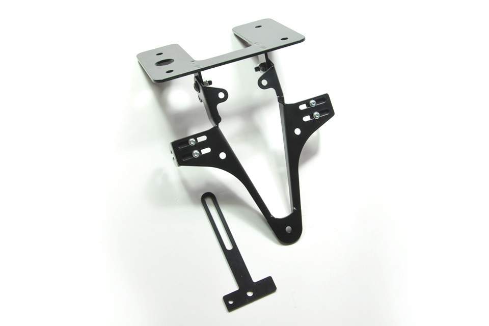 Vysoce kvalitní ocelový držák SPZ.Držák je pro vysokou životnost a pro vyšší odolnost lakovaný černou práškovou barvou.Díky plynule nastavitelnému úhlu náklonu lze držák nastavit do idální pozice. Není potřeba žádná úprava kapotáží.