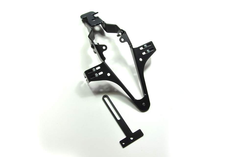 Vysoce kvalitní ocelový držák SPZ.Držák je pro vysokou životnost a pro vyšší odolnost lakovaný černou práškovou barvou.Díky plynule nastavitelnému úhlu náklonu lze držák nastavit do idální pozice. Není potřeba žádná úprava kapotáží.