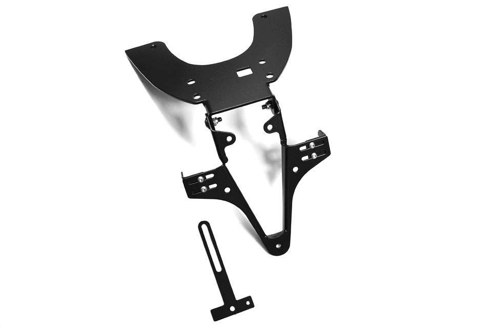 Vysoce kvalitní ocelový držák SPZ.Držák je pro vysokou životnost a pro vyšší odolnost lakovaný černou práškovou barvou.Díky plynule nastavitelnému úhlu náklonu lze držák nastavit do idální pozice. Není potřeba žádná úprava kapotáží.