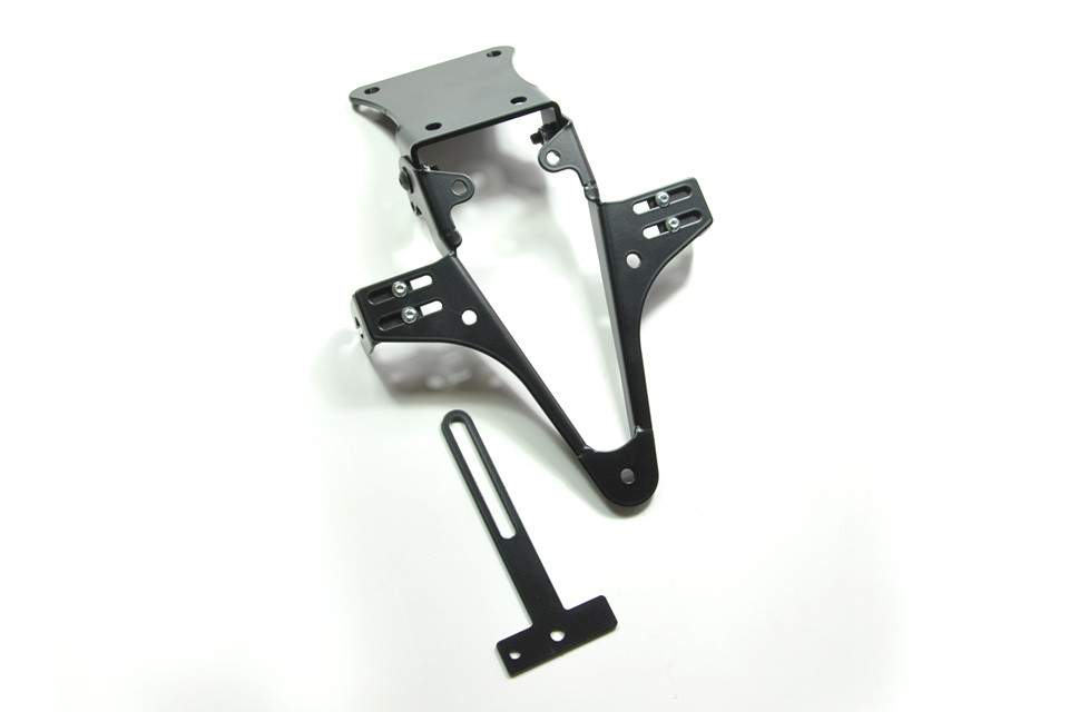 Vysoce kvalitní ocelový držák SPZ.Držák je pro vysokou životnost a pro vyšší odolnost lakovaný černou práškovou barvou.Díky plynule nastavitelnému úhlu náklonu lze držák nastavit do idální pozice. Není potřeba žádná úprava kapotáží.