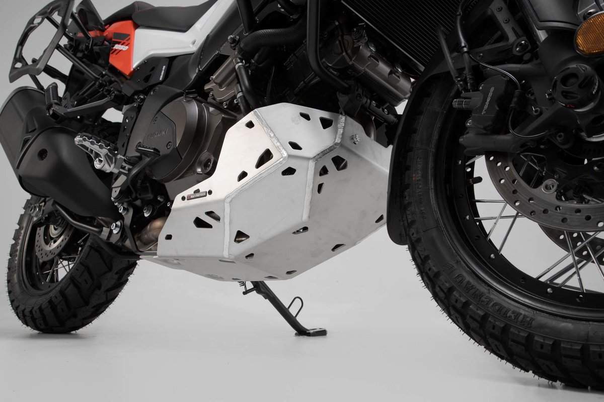 Ochranu motoru pro Suzuki V-Strom 1050 lze vybavit jak nárazovou lištou Suzuki OEM, tak nárazovou lištou SW-MOTECH.