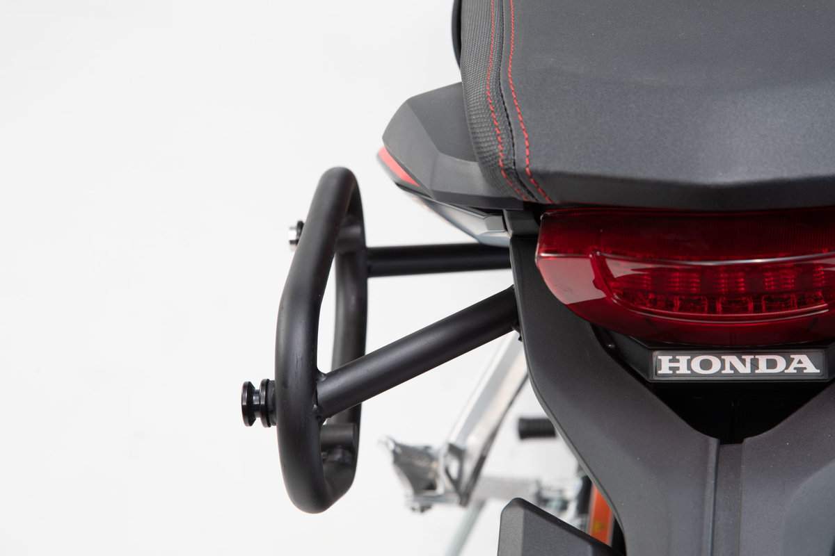 - Specifická konstrukce umožňuje montáž pouze na jednu stranu nebo po dokoupení druhého dílu oboustranně. Ideální řešení pro motocykl s vysoko umístěnými výfuky