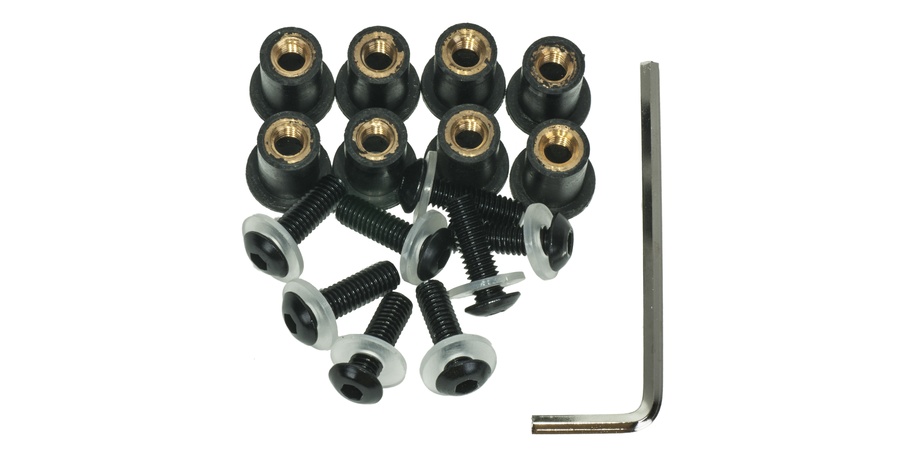 Inbusy pro plexi vč. matic M5 v pryžovém pouzdře a podložek, OXFORD (černý elox)