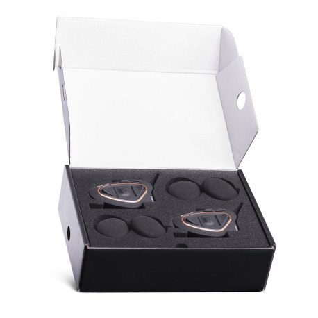 BTX1 Pro S je jediným interkomem své kategorie, který zavádí konferenční režim až pro 4 osoby. Komunikace mezi jezdcem a spolujezdcem a mezi motocyklem a motocyklem až do vzdálenosti 800m. Můžete připojit až 2 mobilní telefony současně a výdrž baterie je 23 hodin. Vše v režimu Full Duplex, s digitální kvalitou a systémem DNK pro potlačení šumu a AGC pro automatické ovládání hlasitosti. Kompatibilní s konektivitou všech integrovaných systémů výrobců motocyklů.