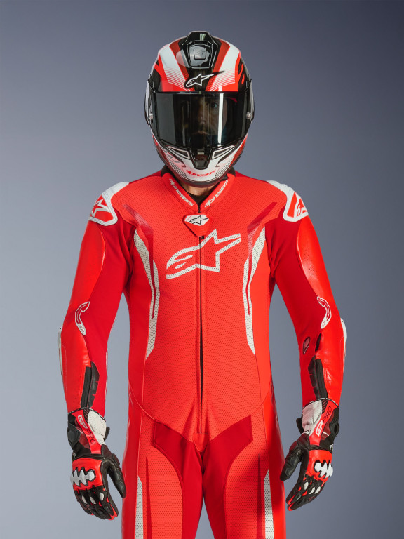 Jednodílná kombinéza GP TECH V5, ALPINESTARS (červená fluo/červená/bílá) 2026
