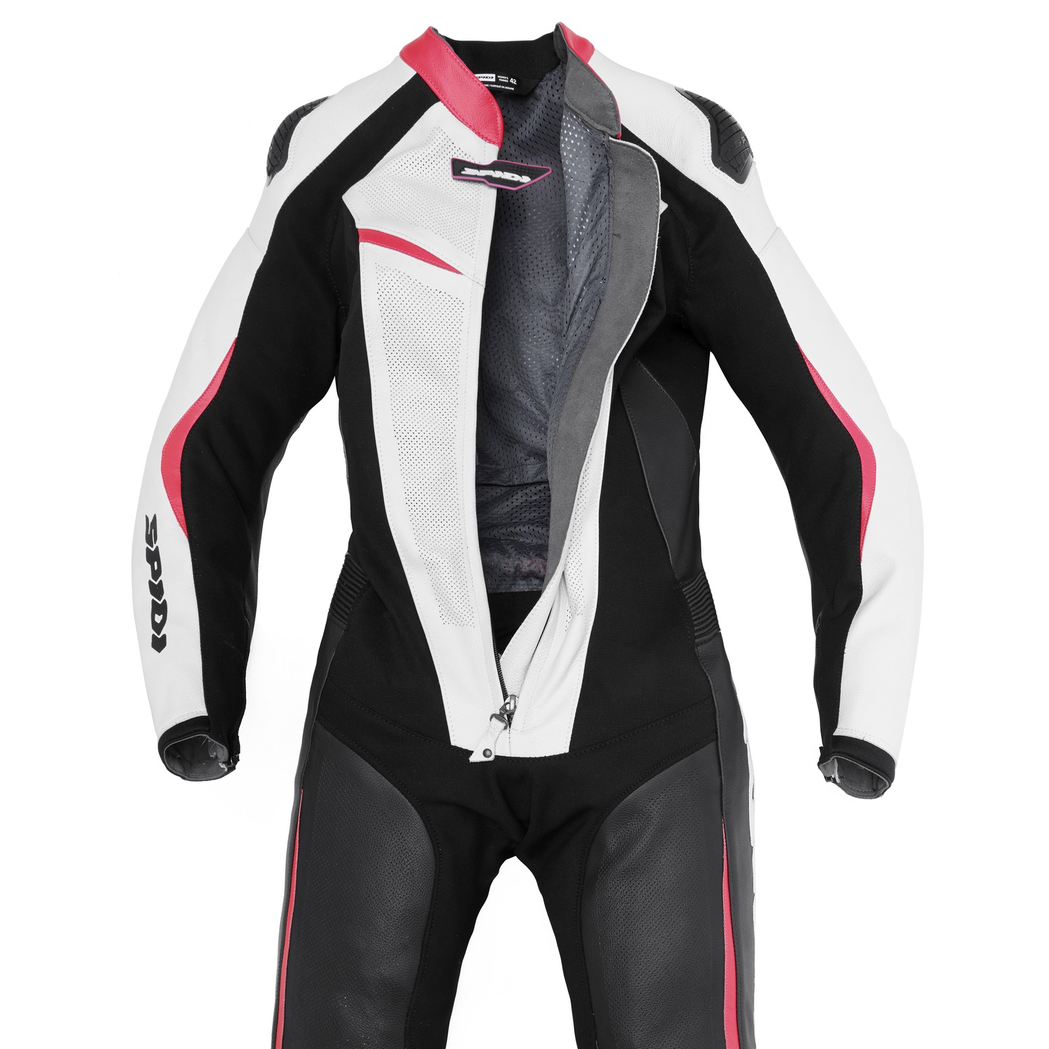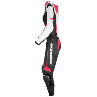 Jednodílná kombinéza TRACK LADY PERFORATED PRO je špičkově zpracovaná kombinéza, která byla navřena speciálně s ohledem na ženské křivky. Kombinace nejkvalitnějších materiálů a perfektního střihu zaručuje nejvyšší stupeň bezpečí a pohodlí, ať na okruhu či mimo něj. Na kombinézu je použita italská hovězí kůže té nejvyšší kvality v kombinaci se strečovými panely z houževnaté tkaniny Tenax Flex 6.6, která je velmi odolná proti prodření. Tenax Flex 6.6 strečové panely jsou umístěny na exponovaných místech (třísla, rukávy) tak, aby jezdec měl co největší volnost pohybu a nebyla snížena bezpečnost kombinézy.
