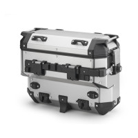 K’VOYAGER je 33 litrový přírodně šedý hliníkový boční kufr na motocykl, pravá montážní strana s výřezem pro výfukový prostor motocyklu.