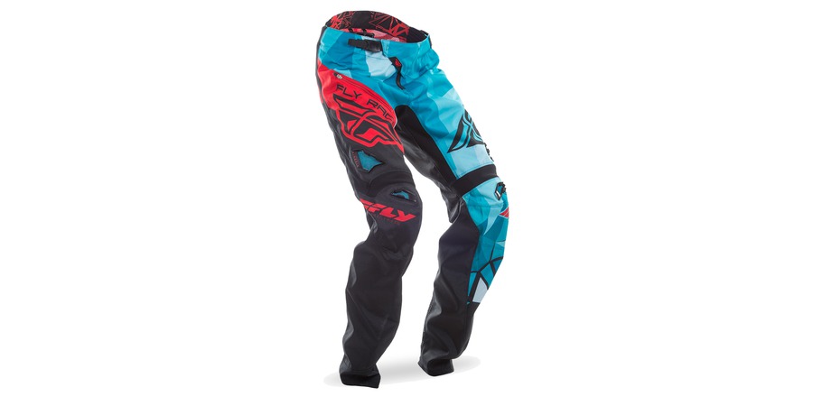 Kalhoty cyklistické MTB, FLY RACING (černá/modrozelená/červená)