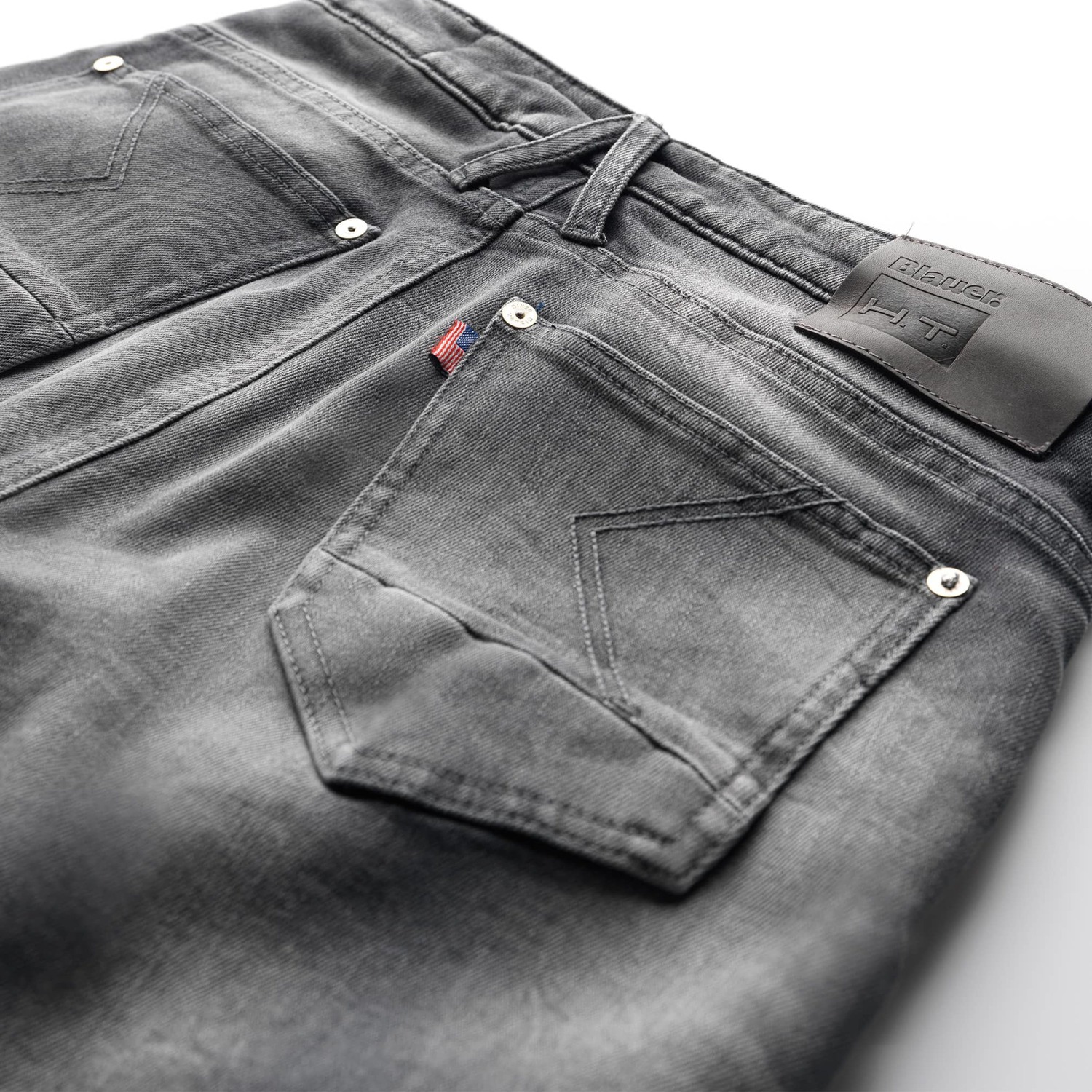 - Vnější obšívka z pevného a odolného denimu se sepraným vzhledem.