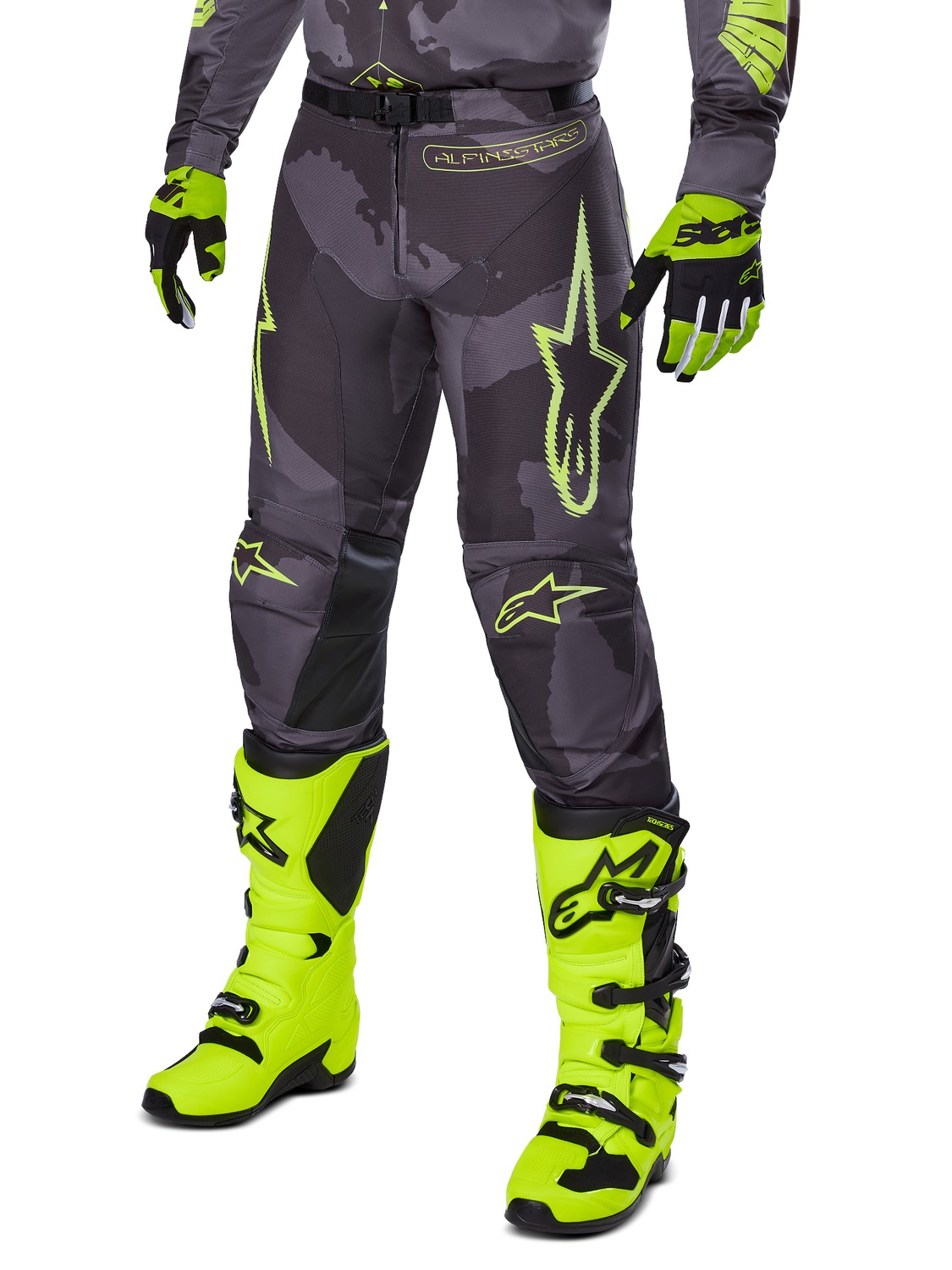 ÚvodOblečení a chráničeTextilní a kožené oblečeníKalhotyKalhoty RACER HOLLOW, ALPINESTARS (tmavá camo/žlutá fluo) 2025