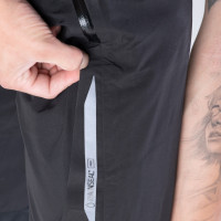 Voděodolné zipy YKK AQUA po stranách kalhot pro snadnější nasazování kalhot.
