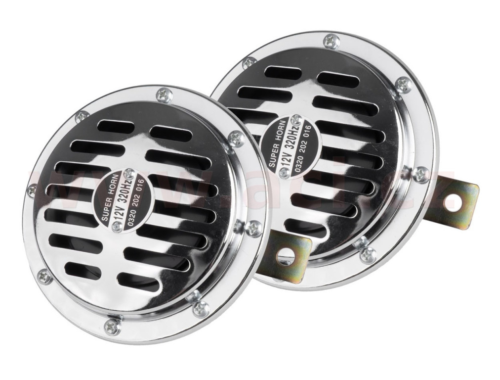 - Stylový design: Chromovaná povrchová úprava dodává klaksonu elegantní a moderní vzhled, díky kterému váš vůz na silnici vynikne.