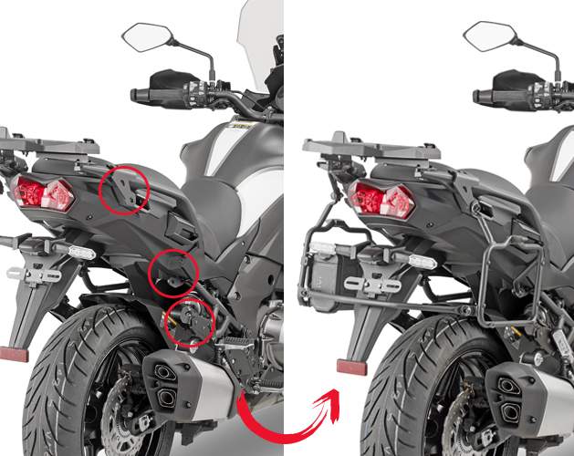 PLR EASY FIT trubkový nosič bočních kufrů, DEMONTOVATELNÝ. Kufry MONOKEY kupte samostatně v sekci Zboží - kufry GIVI - Monokey boční. Tento trubkový nosič lze snadno a rychle demontovat z motocyklu, zbudou jen úchytné trny pro snadnou zpětnou montáž.
