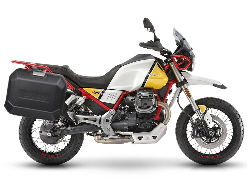 Kompletní sada hliníkových kufrů SHAD TERRA, 48L topcase 36L/47L boční kufry, včetně montážní sady a plotny SHAD MOTO GUZZI V 85 TT