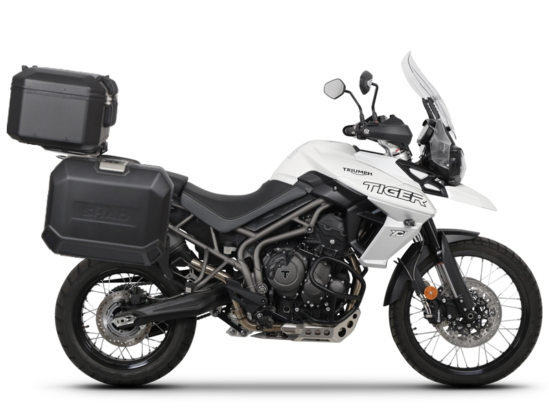 Kompletní sada černých hliníkových kufrů SHAD TERRA BLACK , 48L topcase 36L/47L boční kufry, včetně montážní sady a plotny SHAD TRIUMPH Tiger 800