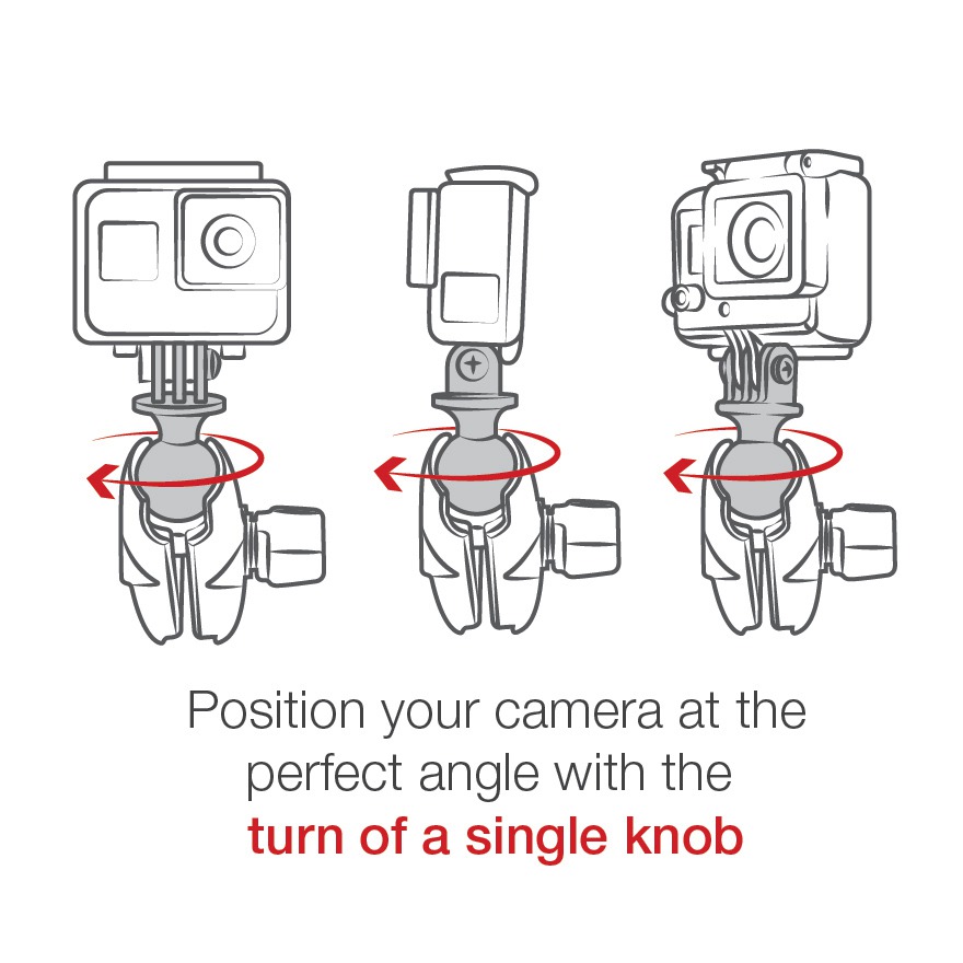 Produkt se skládá ze základny-úchytu na víčko nádrže motocyklů Honda, Suzuki, KTM, Yamaha a Victory (rozteč šroubů 88,9 mm), krátkého kovového ramene 60 mm a plastového kloubu 1" k uchycení kamer GoPro®/Action Camera a Garmin.