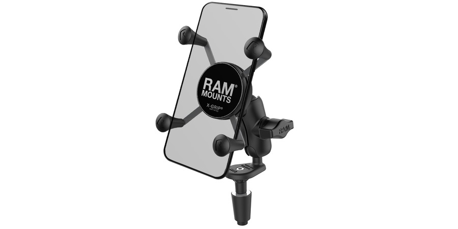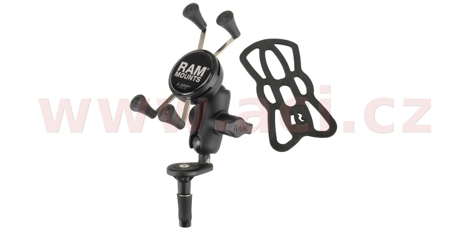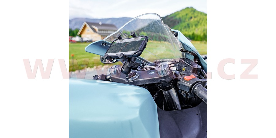 Držák mobilního telefonu X-Grip na motocykl s uchycením do krku řízení s průměrem od 12 do 38 mm.