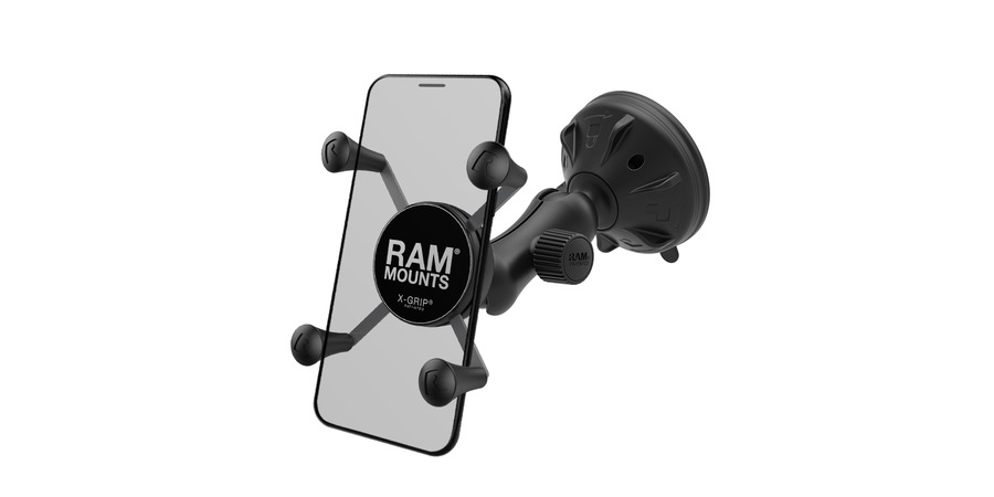 RAM Mounts univerzální držák na mobilní telefon s odlehčeným ramenem o délce 70 mm a vysoce kvalitní přísavkou na sklo o průměru 70 mm.