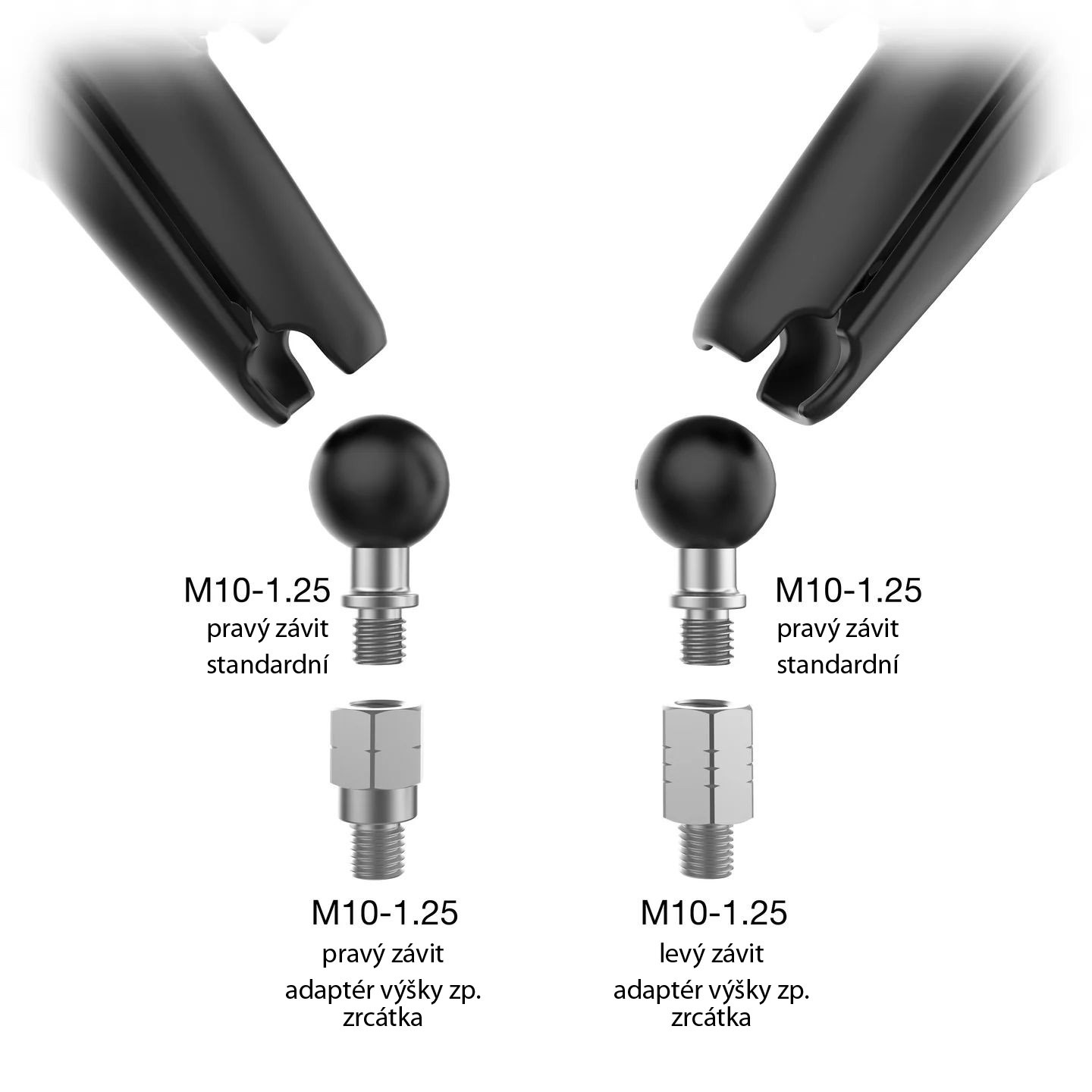 - 1x adaptér pro obrácený závit a 1x prodloužení závitu M10x1,25