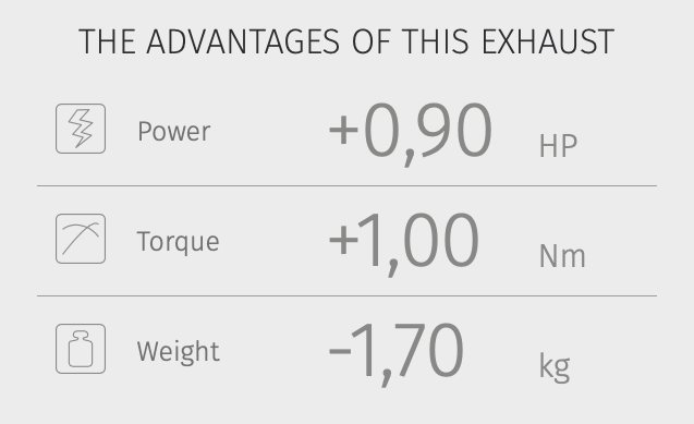 Tělo z kartáčované nerezové oceli s perlovým efektem, který je výsledkem speciální povrchové úpravy, dodává výfuku nezaměnitelný vzhled. Design doplňuje karbonové víčko.