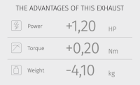 Tělo z kartáčované nerezové oceli s perlovým efektem, který je výsledkem speciální povrchové úpravy, dodává výfuku nezaměnitelný vzhled. Design doplňuje karbonové víčko.