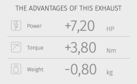 Tělo z kartáčované nerezové oceli s perlovým efektem, který je výsledkem speciální povrchové úpravy, dodává výfuku nezaměnitelný vzhled. Design doplňuje karbonové víčko.