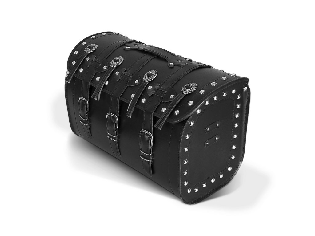 Kufr na motorku z hovězí kůže, tl. 2,8 - 3,2 mm opatřena vodoodpudivým povlakem.