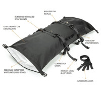 Vnější plášť je vyroben z 420D Cordura® LITE s vnitřní vložkou s podlepenými švy. Rollpack je vyroben tak, aby vydržel nejdrsnější podmínky a poskytoval maximální ochranu vašim uloženým věcem. Oboustranný rolovací uzávěr poskytuje flexibilní voděodolné řešení se snadným přístupem z obou konců. Rollpack je navržen tak, aby se bezpečně vešel na zadní nosič nebo sedadlo spolujezdce a lze jej srolovat a převážet na motorce či v batohu, pokud potřebujete využít další úložný prostor.