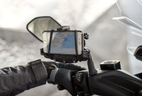 Universální držák pro Smartphone. Navrženo pro rozměry přístroje 112 x 52mm až 148 x 75mm. Určeno pro umístění na řídítka motocyklů, skůtrů, jízdních kol, nebo čtyřkolek.