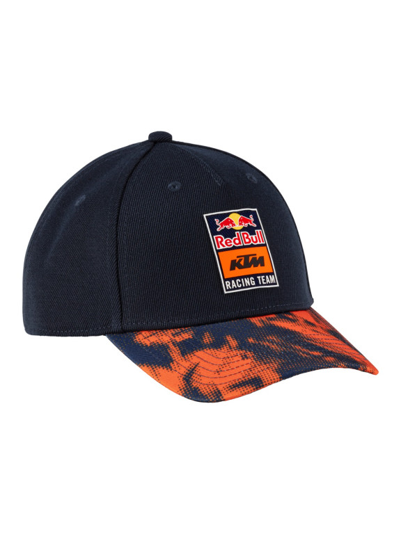 Dětská kšiltovka se zahnutým kšiltem z oficiální kolekce KTM Red Bull Racing. Dětská kšiltovka s 3D logem na přední straně. Týmové logo i barvy.
