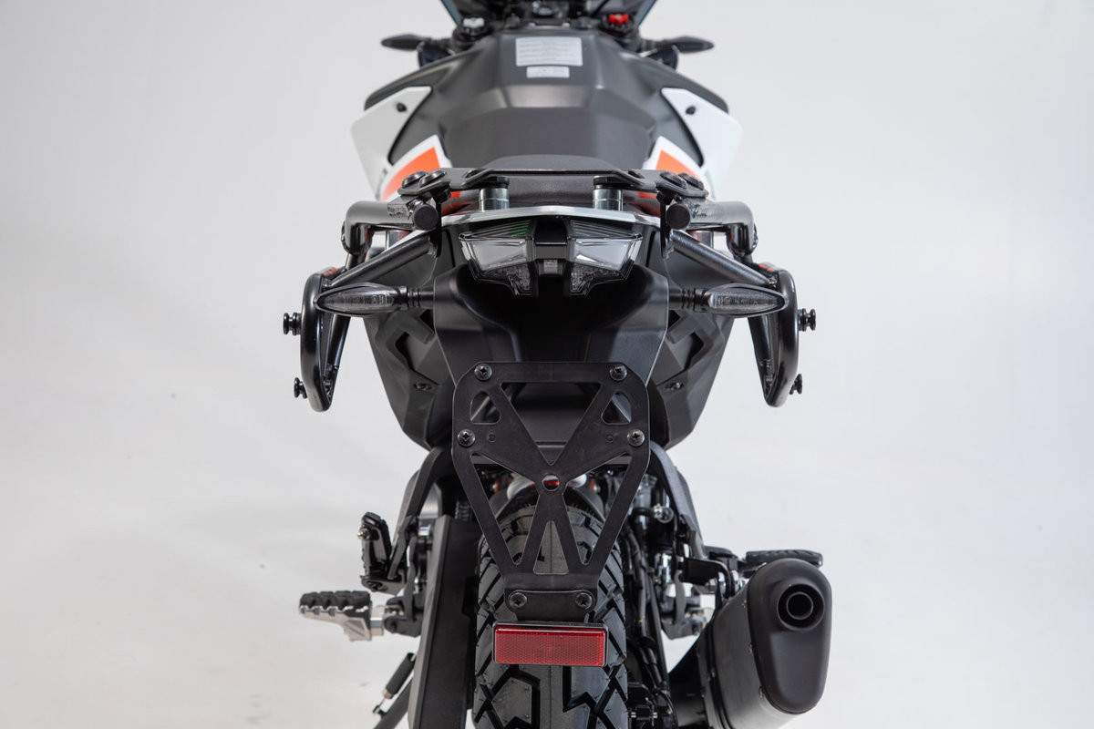 Specifický postranní nosič (levá strana) umožňuje snadné připevnění boční tašky se stejným systémem uchycení