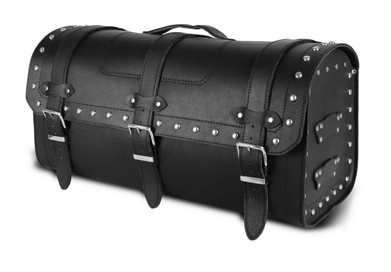 Kufr na motorku vyroben z hovězí kůže, tl. 2,8 - 3,2 mm opatřena vodoodpudivým povlakem.