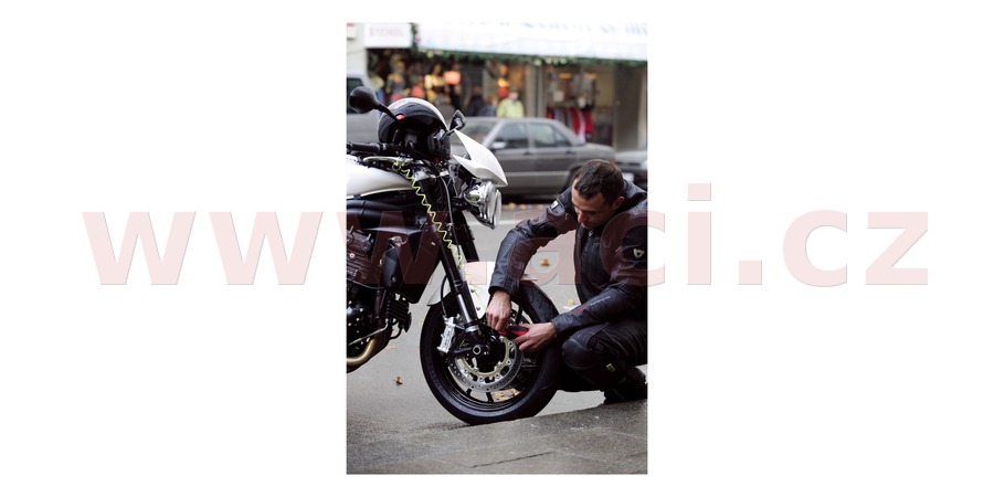 Jeden konec lanka je připevněný k zámku na kotoučové brzdě a druhý jako optický připomínač na páčce brzdy nebo na řídítku.