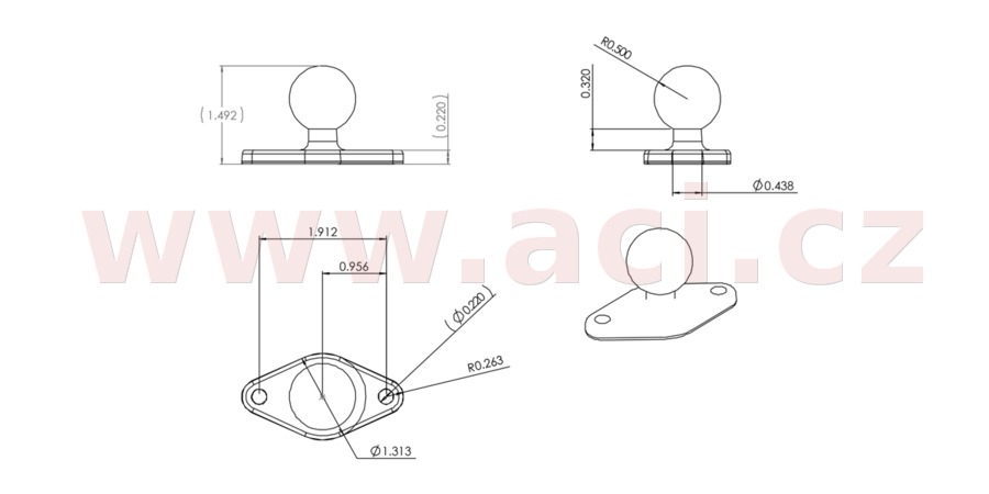 Jako úchyt na rovné povrchy s kulovým čepem. Může se použít jako levnější alternativa pro lehkou elektroniku a pro prostředí s nižším namáháním místo M021-068. Je určen pro pevné nerozebíratelné připevnění držáku na rovnou plochu. Například pomocí vrutů na vhodné místo palubní desky nákladního auta, na palubu lodi, board kajaku atd.