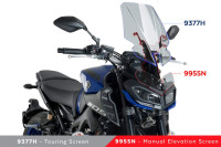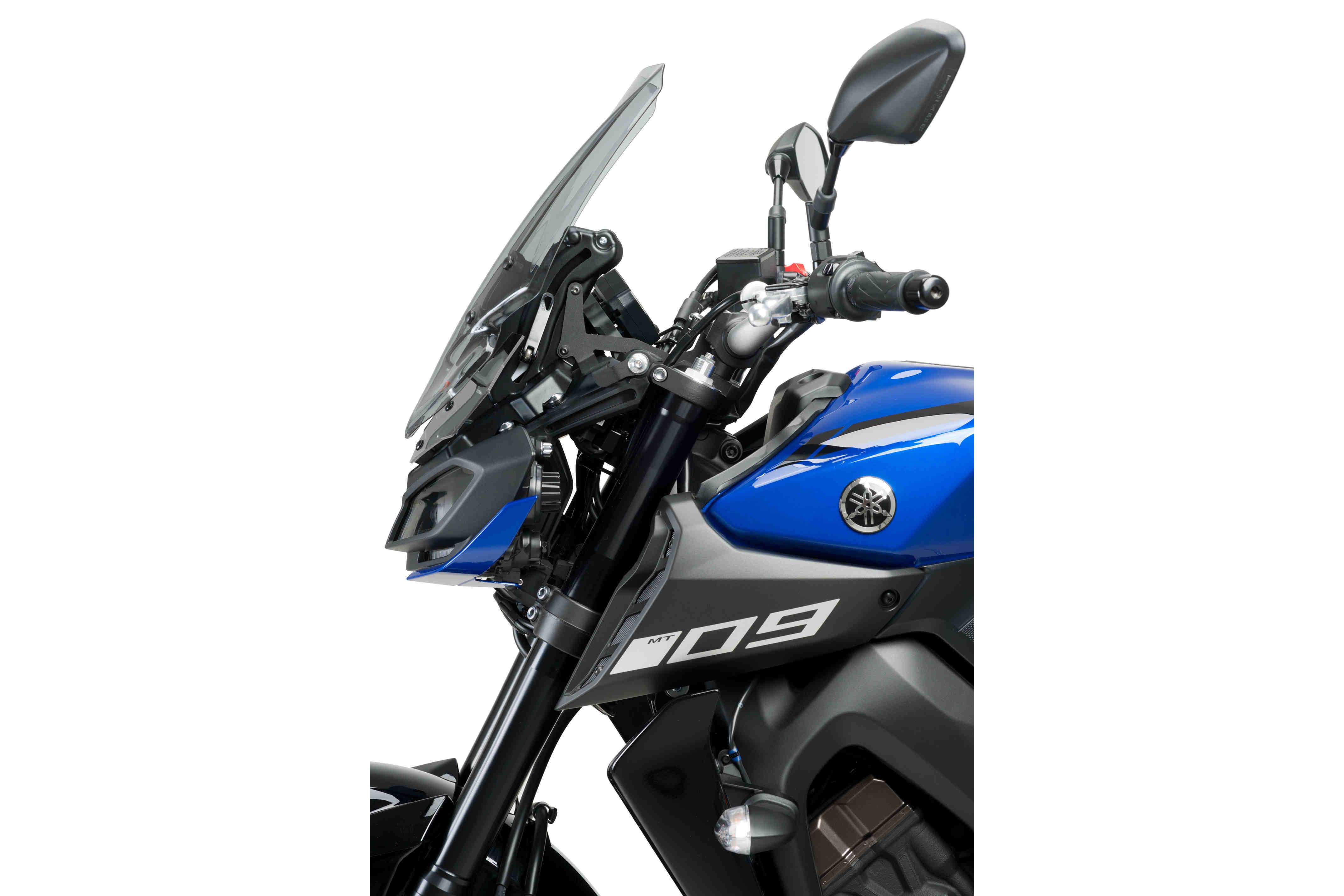 Manuální regulační systém plexiskla pro YAMAHA MT-09, který umožní posunout plexisklo až o 110 milimetrů. Dodává se s vysoce kvalitními akrylovými bočními deflektory, které zlepší aerodynamiku, ale neuškodí vzhledu MT-09. Podpěry MEM jsou vyrobeny z 2mm široké oceli s antikorozní povrchovou úpravou, což neovlivňuje jejich lehkost a design. V nejvyšší poloze činí aerodynamická ochrana 72 % (při použití plexiskla Puig Touring). Jeho montáž je jednoduchá a hotová do 15 minut.