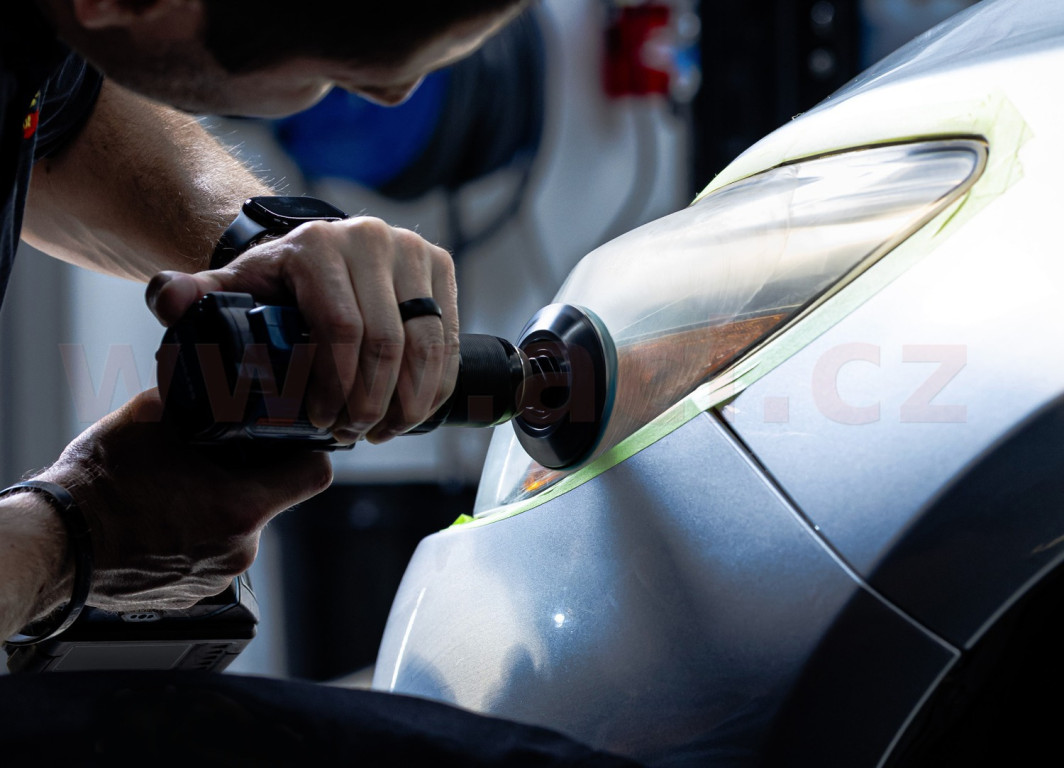 Renovace probíhá ve dvou jednoduchých krocích – mechanické vyčištění pomocí vrtačky a ruční nanesení ochrany. Výsledkem jsou dokonale čisté světlomety, lepší viditelnost a bezpečnější jízda za tmy.