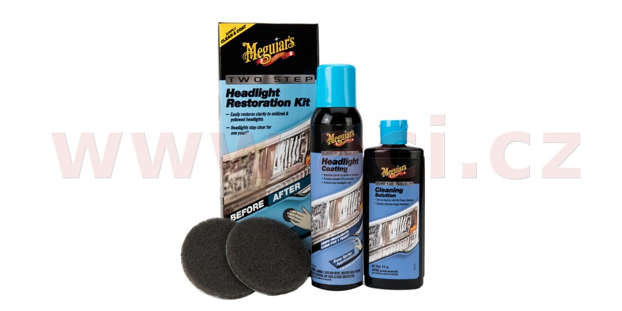 Evoluce v renovaci světlometů a ostatních povrchů z čirého plastu je tu! Společnost Meguiar's vyvinula zcela novou metodu renovace světlometů, která nemá obdoby! Se sadou Meguiar's Two Step Headlight Restoration Kit dosáhnete naprosto fantastických výsledků během pouhých několika minut! V druhém kroku svoje světlomety navíc ochráníte na celý jeden rok před další povrchovou degradací!
