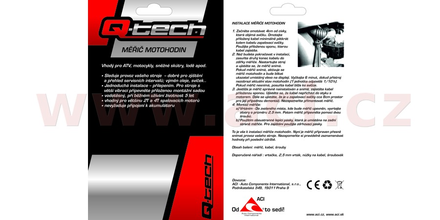 Multifunkční měřič otáček motoru a motohodin, Q-TECH (černý, podsvícený displej)