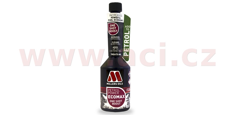 Vysoce výkonná jednorázová aditivace benzínu pro zvýšení účinnosti spalování, zvýšení oktanového čísla o 3 jednotky, připívající rovněž k čistotě spalovacího prostoru. Chrání motor a palivový systém před negativním vlivem benzínu s biosložkou E5 a E10.