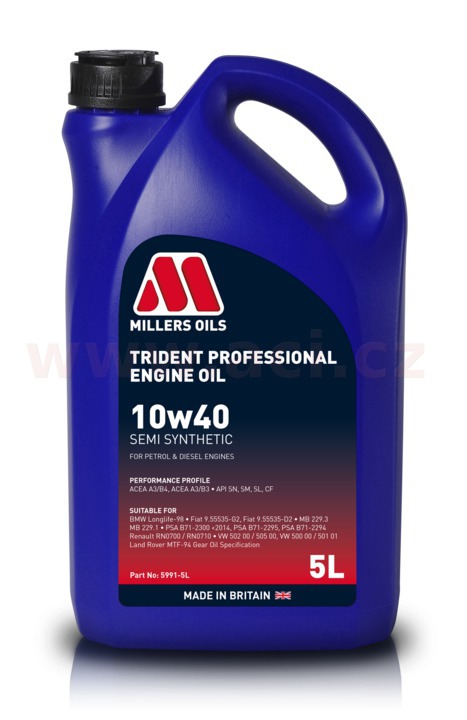 ÚvodDoplňky a příslušenstvíAutomobilové oleje a provozní náplně Millers OilsMILLERS OILS motorový olej polosyntetický Trident Professional 10w40 5l