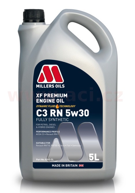 Prémiový motorový olej sestavený s použitím Millers Oils Dynamic Fluid Technology (DFT) určený pro motory vyžadující olej specifikace Renault RN17 s viskozitou 5w30. Vyvinutý pro většinu moderních motorů Renault: benzínových (kromě Renault Sport a Alpine) i naftových, splňující normu Euro 6 (od roku 2018). Nahrazuje oleje starších norem RN 0700 a 0710 a je s nimi zpětně kompatibilní. Sestaven pro benzinové motory s přímým vstřikováním (TGDI). Chrání filtry pevných částic GPF. Tento olej má vynikající antioxidační vlastnosti, udržuje čisté písty a chrání před usazeninami na ventilech.
