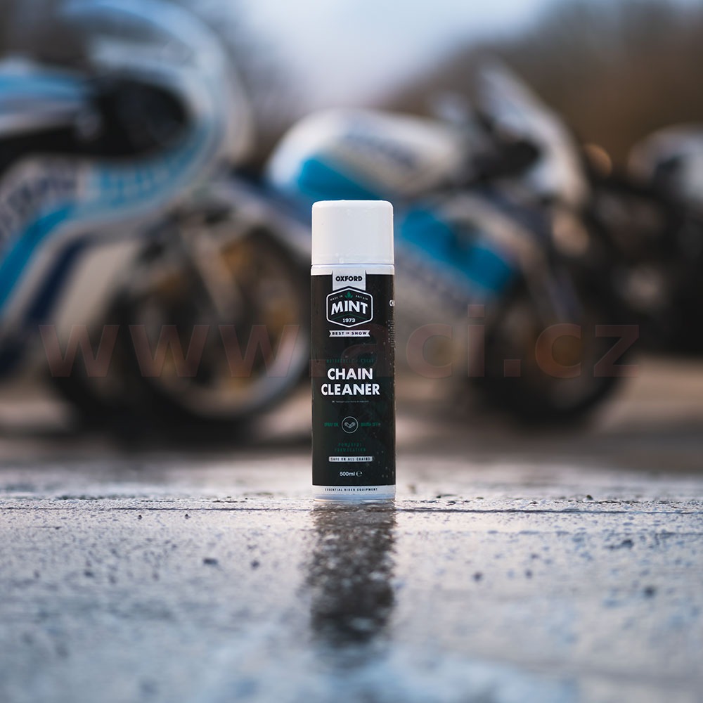 Emulzní látka ve složení čističe dovoluje, aby bylo možné povrch řetězu kompletně opláchnout před aplikací nového maziva na řetězy. Produkt z řady položek moto/cyklo sortimentu značky MINT pro čištění. Aroma s vůní máty.