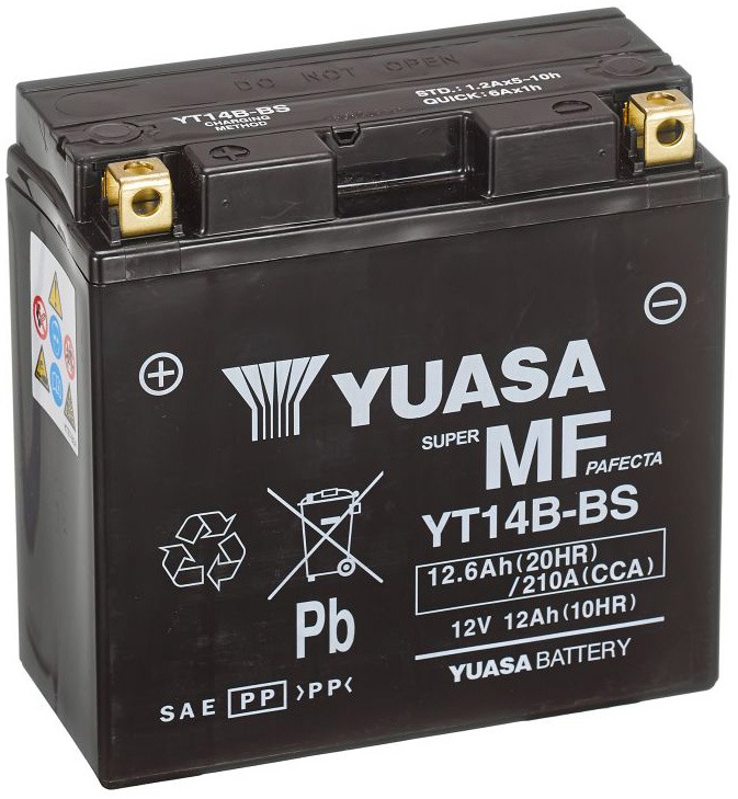 Baterie YUASA MF AGM YT14B je plně aktivovaná a připravená k okamžitému použití.