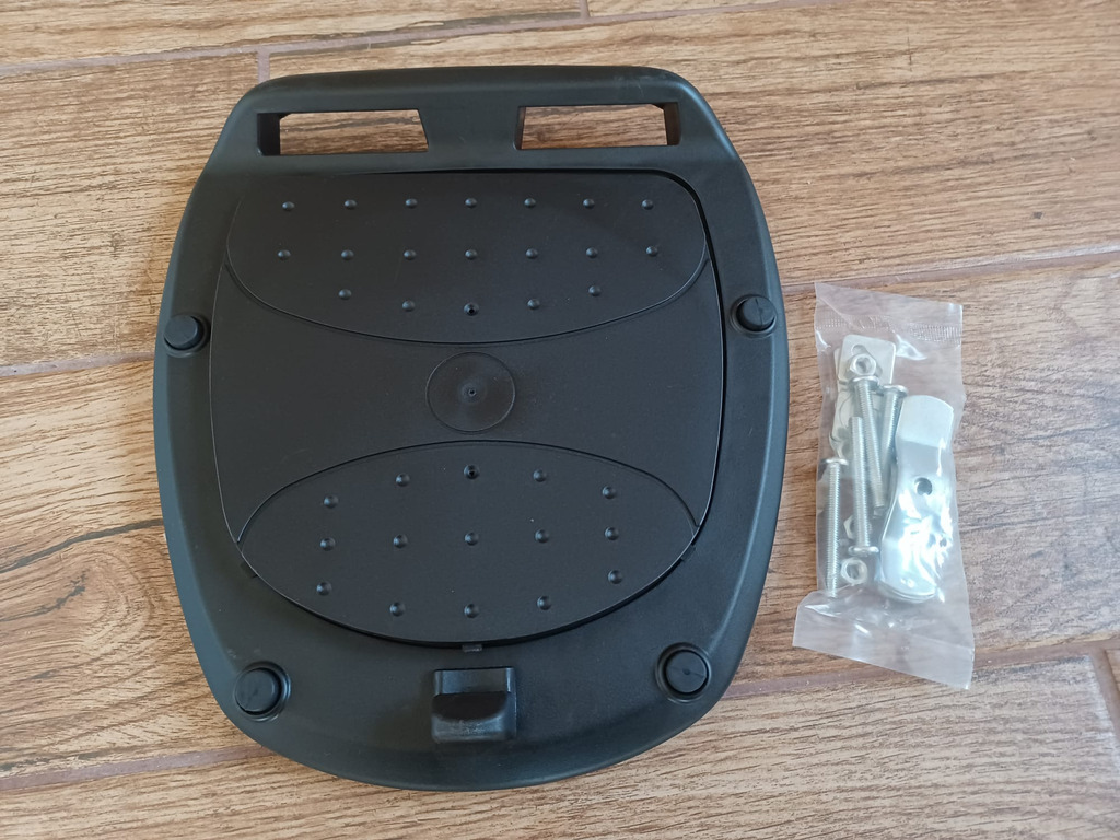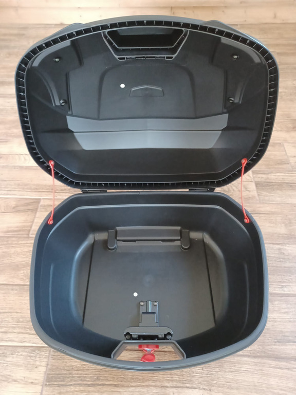 Velký motokufr na 2 přilby s vlastní montážní plotnou typu MONOLOCK, velmi kvalitní provedení, uzamykatelný - inovovaná verze zámku, celoobvodové gumové těsnění proti zatékání vody do kufru, 2x klíček, rozměry: cca 57 x 43 x 32 cm, objem cca 58 l.