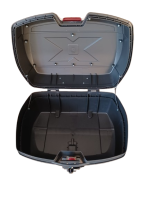 Velký motokufr na 2 přilby s vlastní montážní plotnou, velmi kvalitní provedení, integrovaná opěrka, uzamykatelný, 2x klíček. Rozměry: 55 x 41 x 30 cm. Objem 46 l.