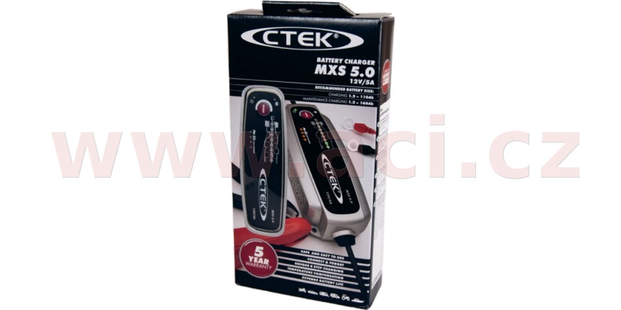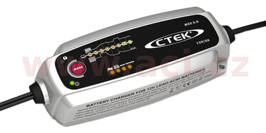 MXS 5.0 "NEW" - je plně automatická 8 kroková nabíječka. Maximální nabíjecí proud je 5 A. Je určena pro 12 V baterie od 1,2 do 120 Ah a je vhodná pro akumulátory až do 160 Ah pro udržovací nabíjení.