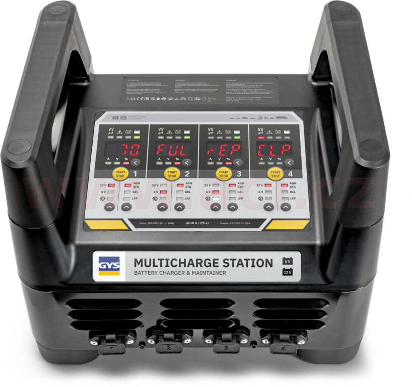 Multinabíjecí stanice 4 x 10 A - Pb/Li je řízena mikroprocesorem, který zaručuje efektivitu a bezpečnost.