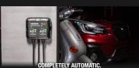 Inteligentní automatická nabíječka umožňuje současně nabíjet nebo udržovat napětí 2 bateriíí s maximálním nabíjecím proudem 2 A. Vhodná pro baterie o kapacitě do 40 Ah včetně lithiových baterií LiFEPO4.
