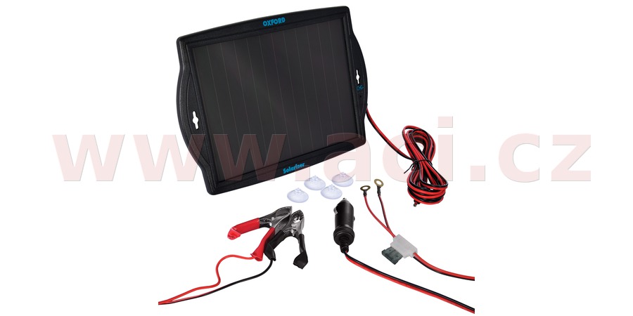 Sada včetně clipů (krokodýl), propojovací kabeláž s pojistkou, konektor pro zapojení do zásuvky zapalovače, voděodolný konektor pro nabíjení bez nutnosti demontáže sedadla nebo kapot