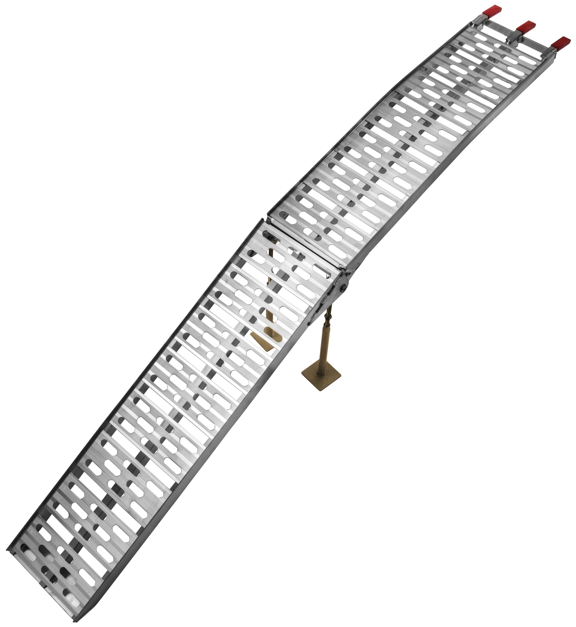 Zesílená hliníková skládací rampa se středovými podpěrami.